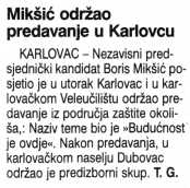 Mikšić održao predavanje u Karlovcu