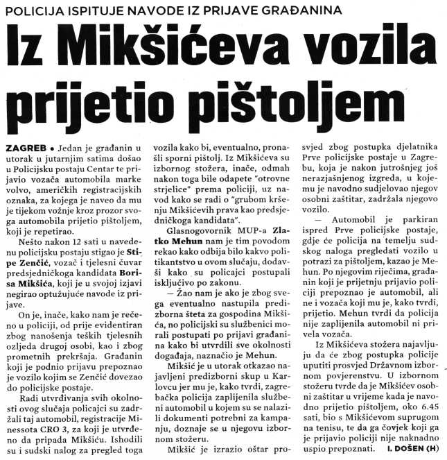 Iz Mikšićeva vozila prijetio pištoljem