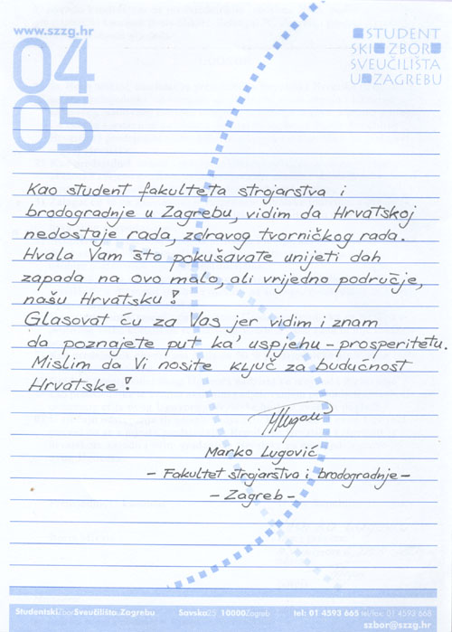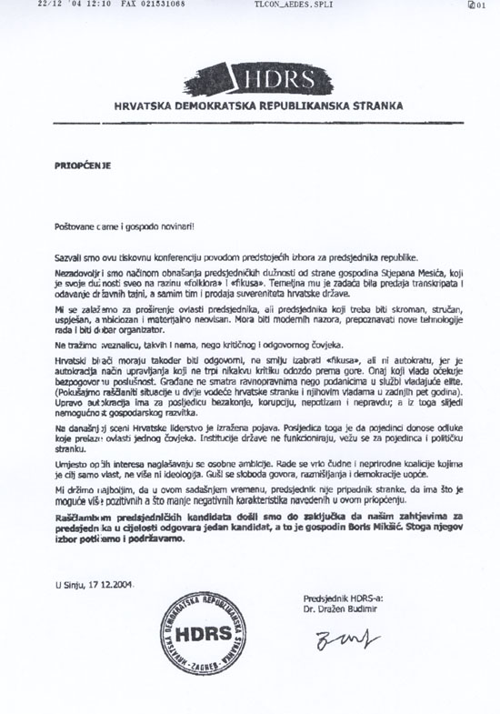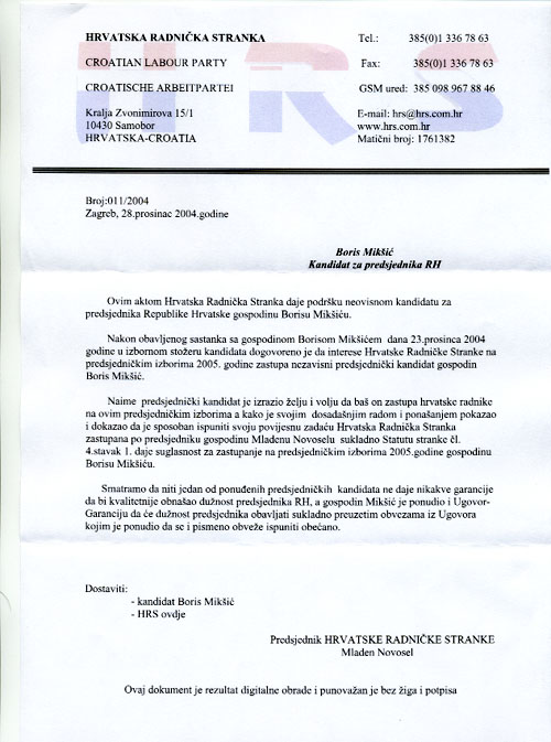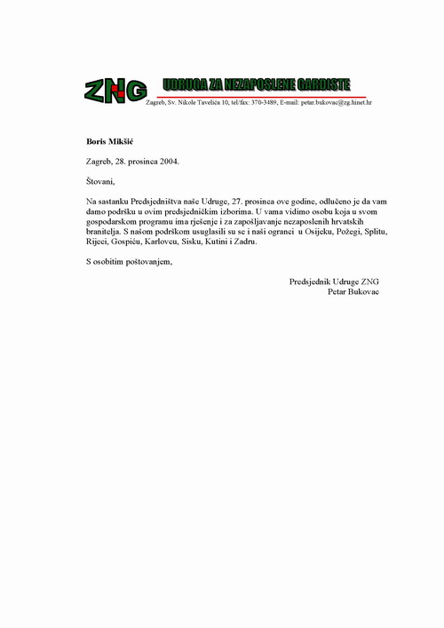 U svezi vašeg dopisa, Domovinska građanska stranka podržava sve one predsjedničke kandidate koji se javno zalažu za jednogodišnji mandat. Zbog nepostojanja lustracijskog zakona Hrvatskoj je potrebna korijenita i ubrzana izborna smjena političara a to je jedino moguće kroz institut jednogodišnjeg mandata.