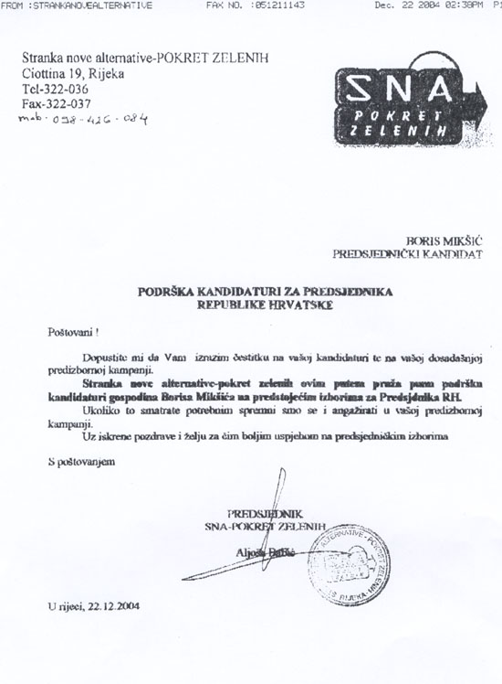 Popis stranaka koje podržavaju kandidaturu Borisa Mikšića: