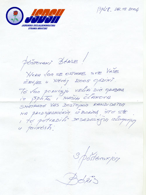 | Spot snimili Splićani u čast Borisu prilikom njegova posjeta Splitu 19. -21. rujna 2004. godine |